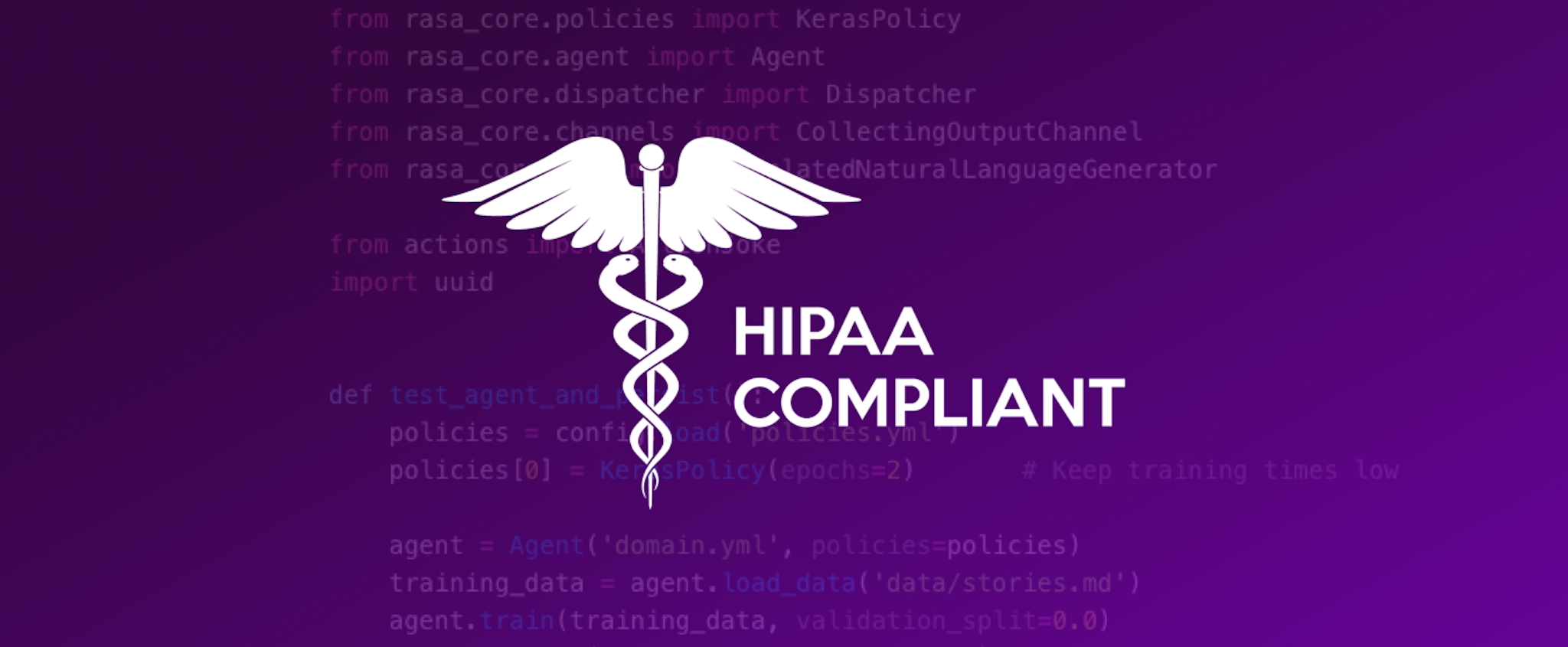 TL;DR: Rasa provides a way to develop your HIPAA compliant conversational AI Assistants. It gives you the full functionality and flexibility to build scalable contextual assistants and chatbots while being in control of your data.