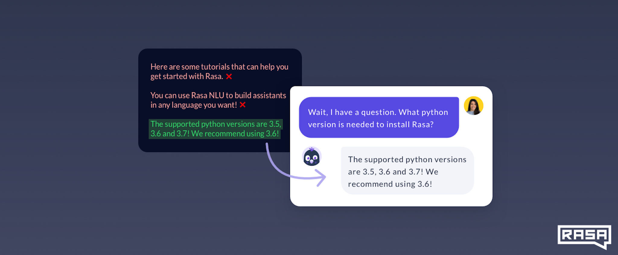 We now have a completely new way of handling single-turn interactions in Rasa assistants. Also, since the feature is experimental, we encourage you to try it out and give feedback. If you are building bots with this new component or just testing it out, keep us posted on how it goes on the forum. We are excited to see what new interesting use cases you build with this component!
